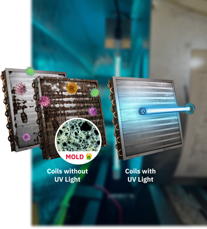 Air flowing through your system passes over these lit-up coils. This continuous "sterilization" keeps both the air and the coils mold-free.