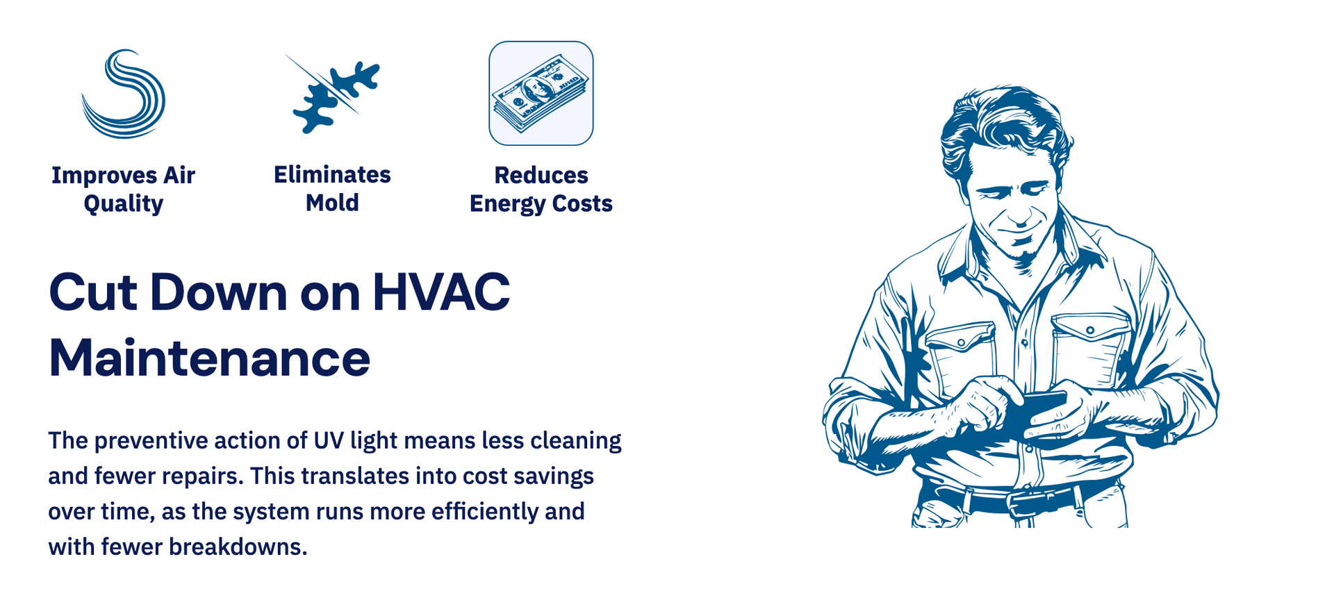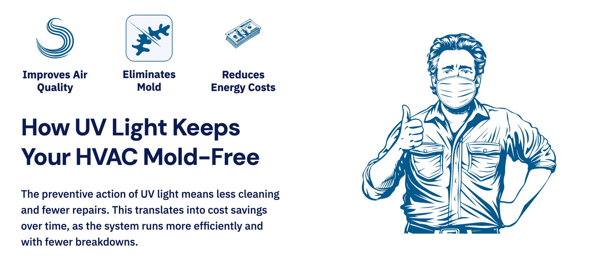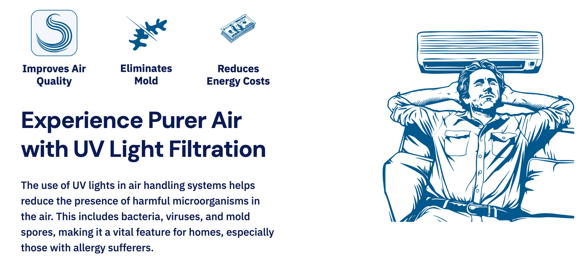 Prevents airborne contaminants like mold, bacteria, and viruses from growing inside your HVAC system with a top-of-the-line UV light system.